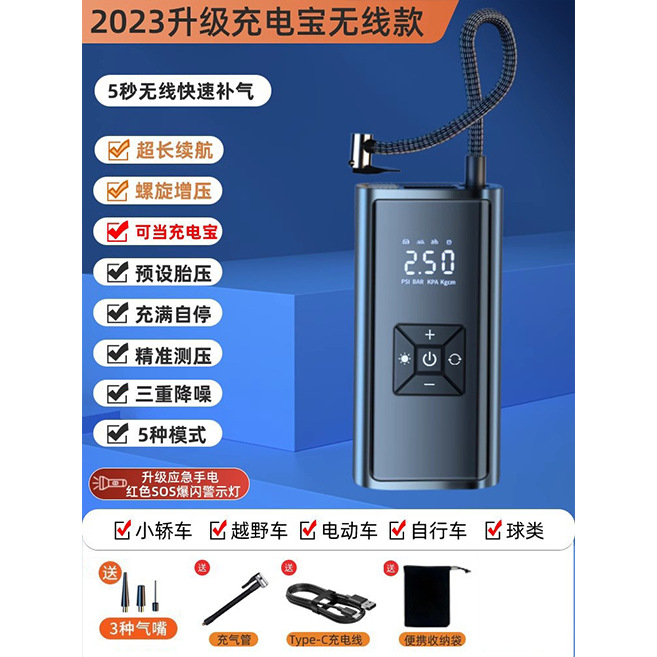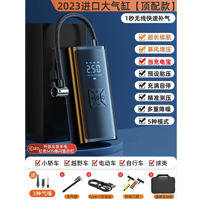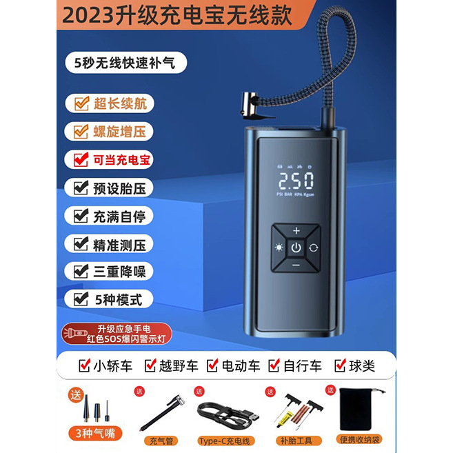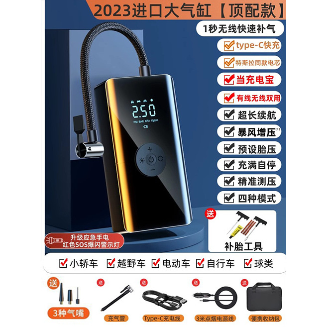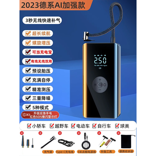 - Specification: SS-Class Brushless German AI ★ Infinite Overpressure Lithium Battery [Wireless Digital ★ As Emergency Power Bank] Storage Bag Tire Repair Tool Air Pump Set