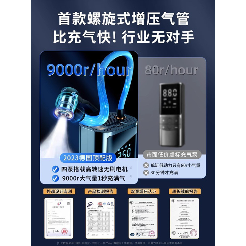 - Specification: Top German AI Brushless Dual Pump [Wireless Smart Digital] Overclock Boost Pressure ★ Preset Tire Pressure ★ Auto Stops Sends Air Pump Set