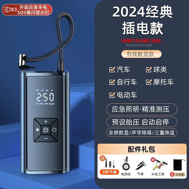 - Specification: German AI ★ Smart Wired Digital Model [Can be plugged into car cigarette lighter] Preset Tire Pressure ★ Auto Stops Sends Tire Repair Tool Cigarette Lighter Power Cord Storage Bag