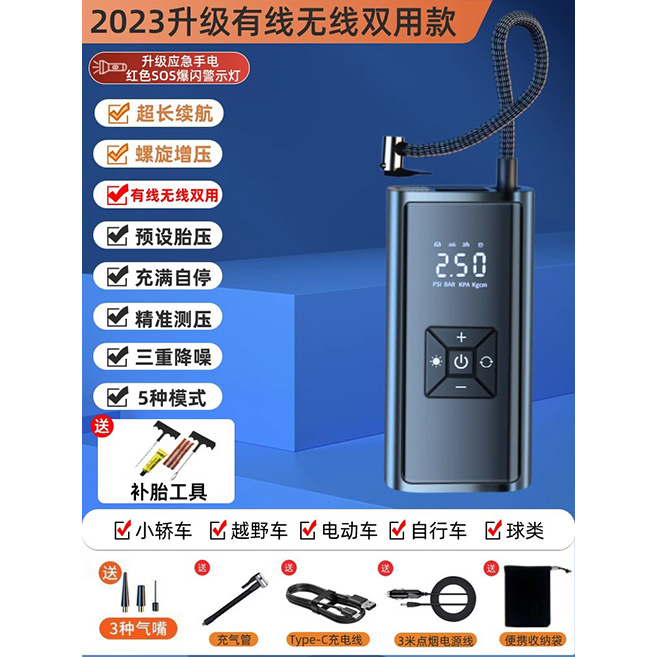 - Specification: S-Class Brushless German AI ★ Vacuum Power Endurance [Wireless Digital ★ Wired/Wireless Dual Use] Tire Repair Tool Storage Bag Air Pump Set