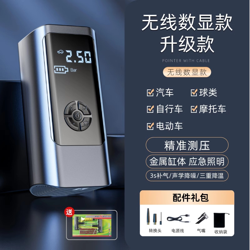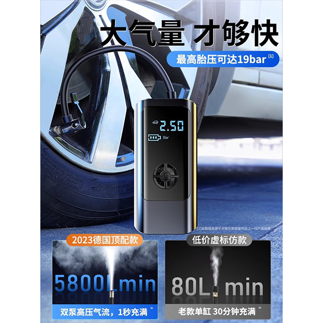 - Specification: 1980000R Motor German AI Smart Top Wireless Digital Pressure Gauge and Tyre Repair Tool Upgraded Dual Pump 6s Fast Charging (Auto Stop When Pressure is Set)