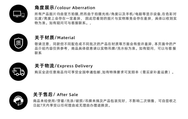 Within 15 days from the date of receipt, customers can be provided with an unconditional return service. The application for return of goods requires the consent of the merchant in the store.