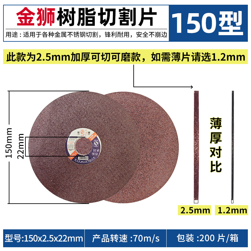 - 規格:金獅150x1.2*22雙網黑色切割片【25片/盒】