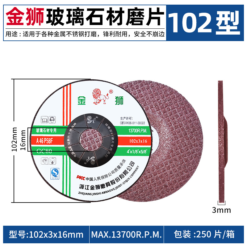 - 規格:金獅102x3x16玻璃石材用GC80【25片/盒】
