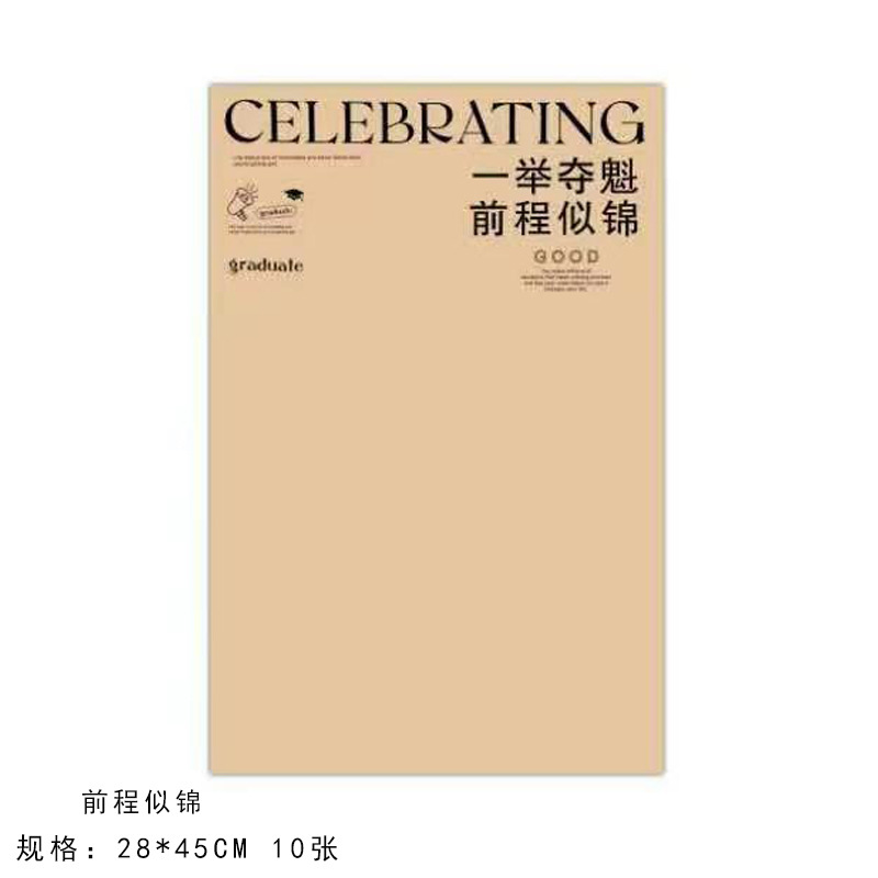 - 規格型號:【包裝紙】:牛皮色畢業快樂前程似錦