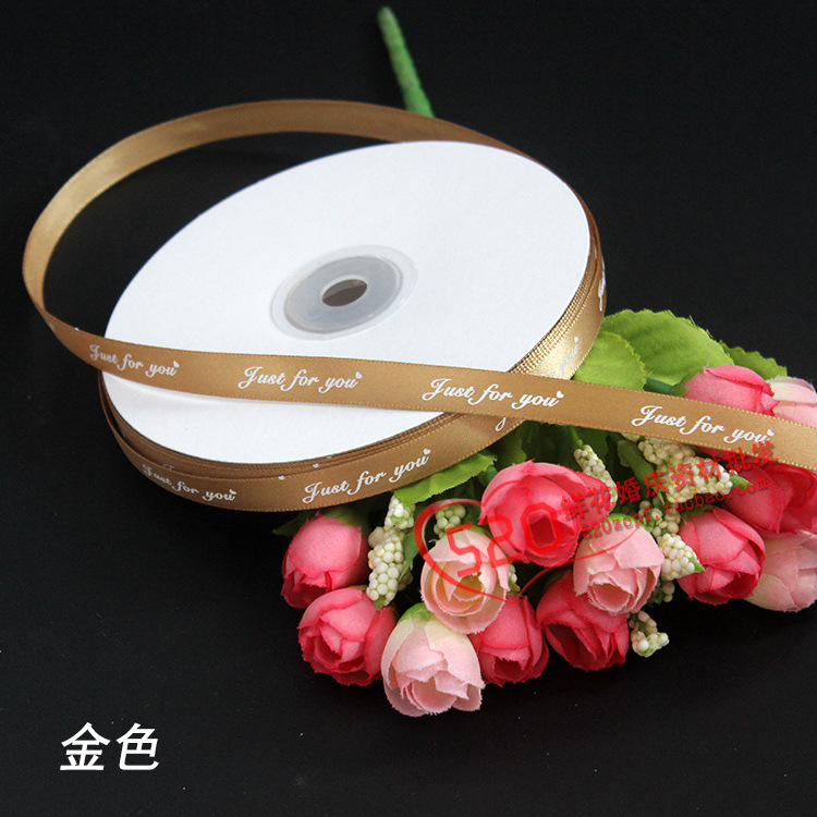 - 規格型號:1cm英文絲帶Justforyou:金色