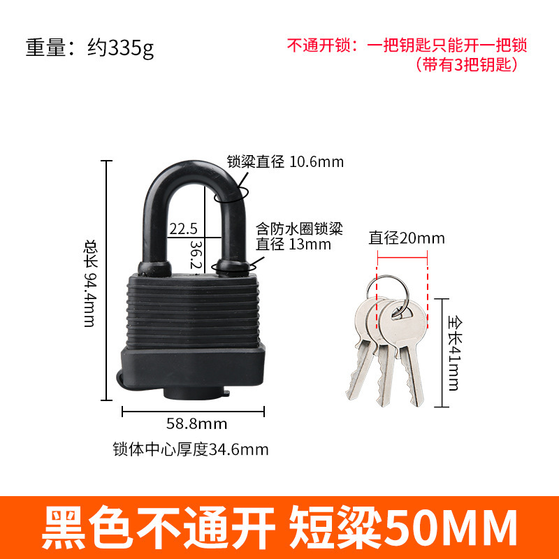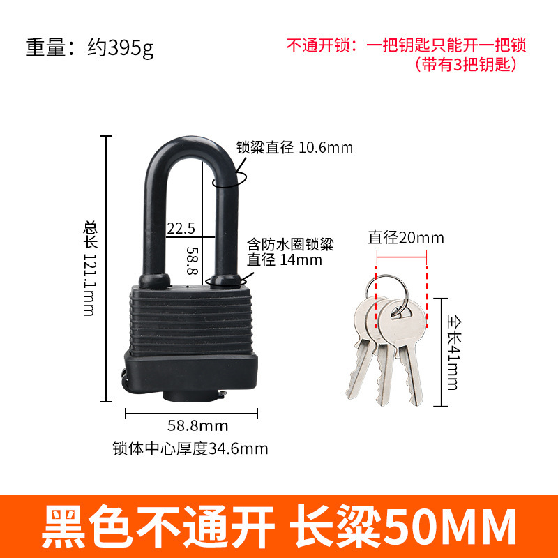 - Specification: Long Beam Waterproof Lock 50MM [Single-Use] Black 3 Keys