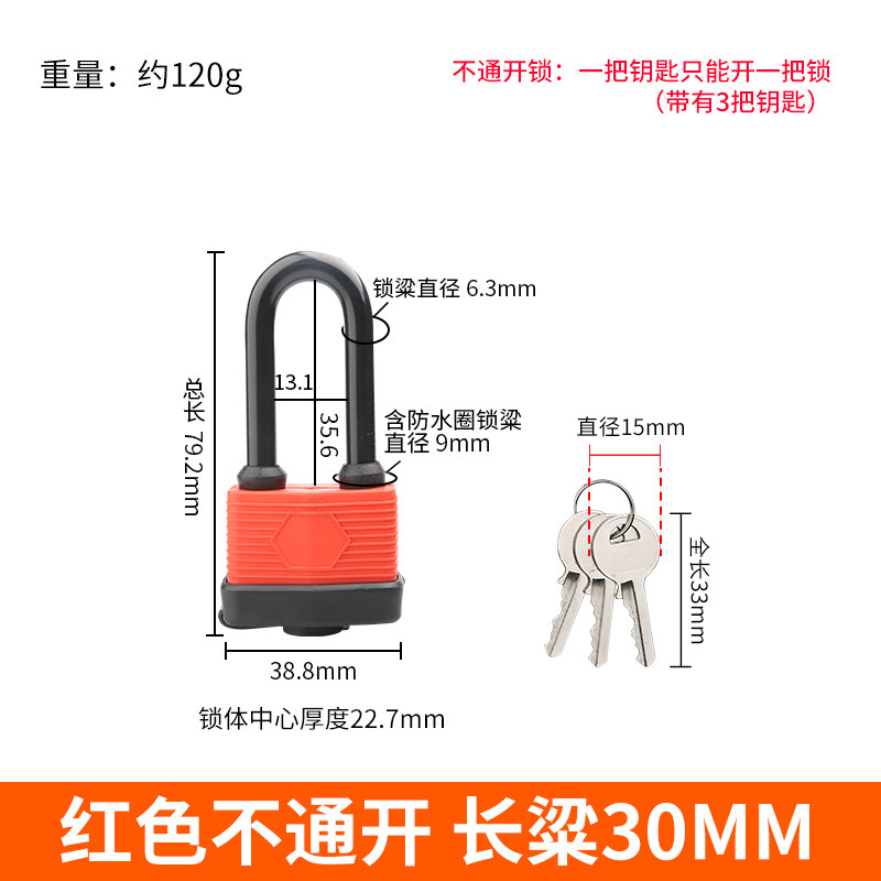 - Specification: Long Beam Waterproof Lock 30MM Non-Interchangeable 3 Keys
