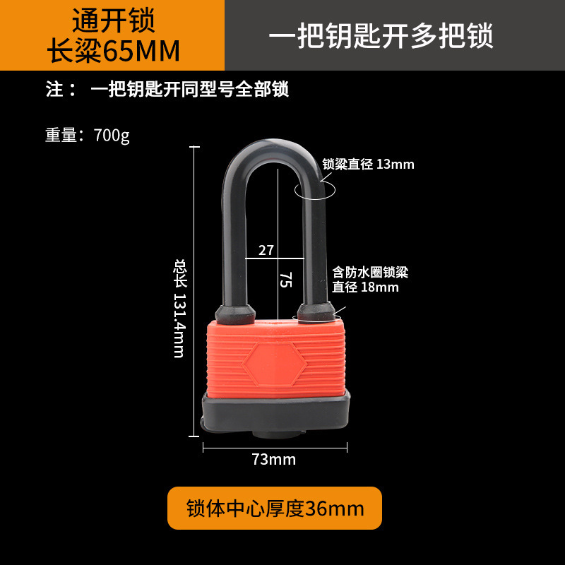- Specification: Long Beam Waterproof Lock 65MM [Single-Use] 3 Keys