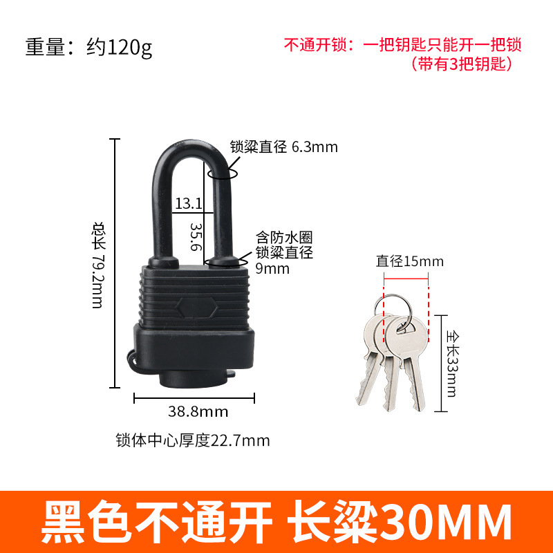 - Specification: Long Beam Waterproof Lock 30MM [Single-Use] Black 3 Keys