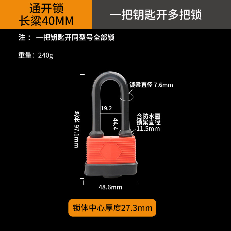 - Specification: Long Beam Waterproof Lock 40MM [Single-Use] Black 3 Keys