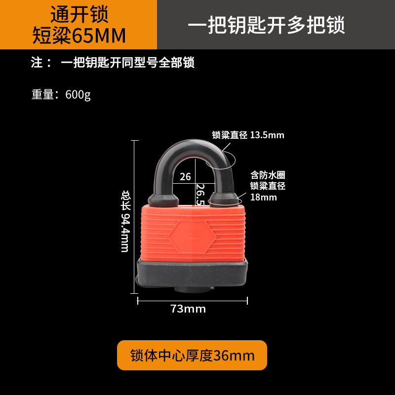 - Specification: [Interchangeable] Short Beam Waterproof Lock 65MM 2 Keys