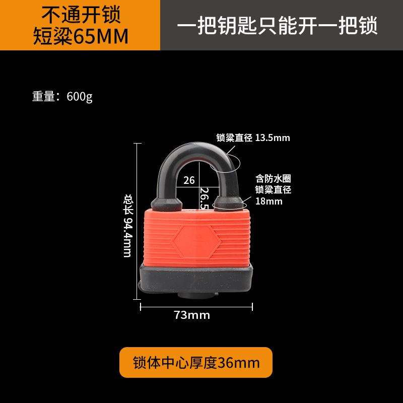- Specification: Short Beam Waterproof Lock 65MM Non-Interchangeable 3 Keys