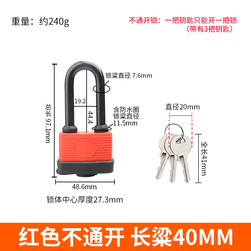 - Specification: Long Beam Waterproof Lock 40MM Non-Interchangeable 3 Keys