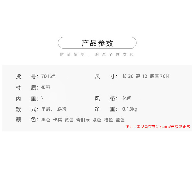 - Material: Oxford Cloth