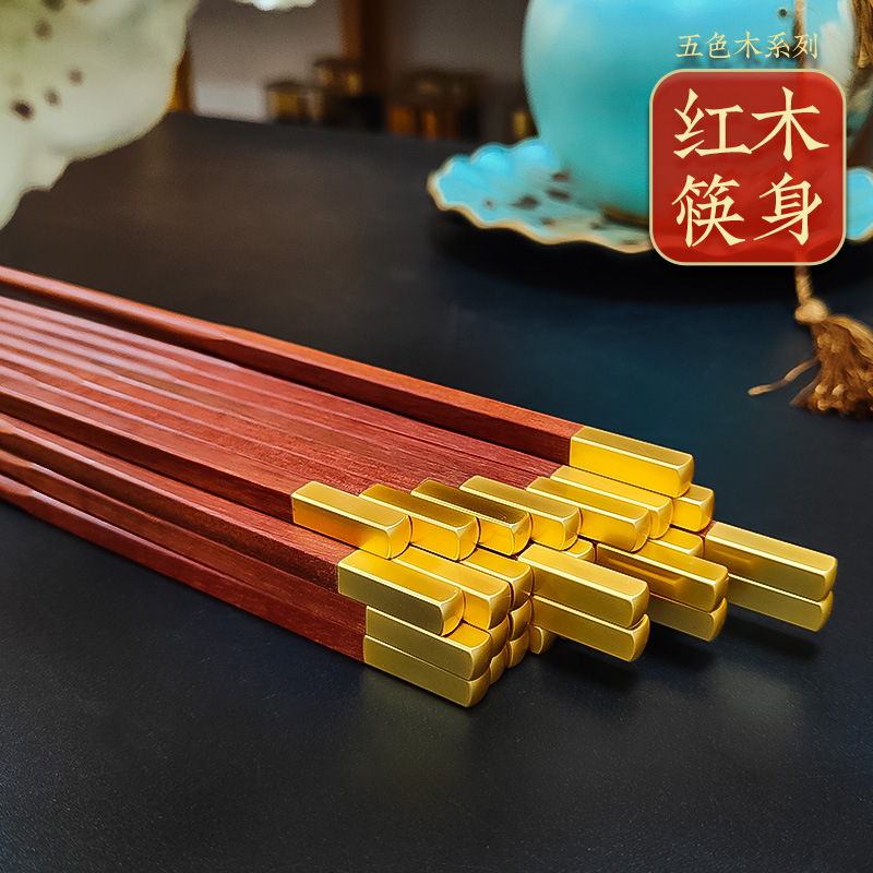 - 規格:鋁頭霧金紅檀木筷