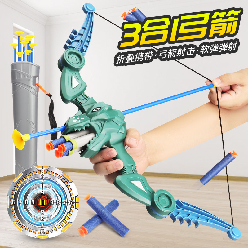 - Specifications: Dark Green Bow + 10 Arrows + 20 Soft Eggs + Target + Arrow Quiver