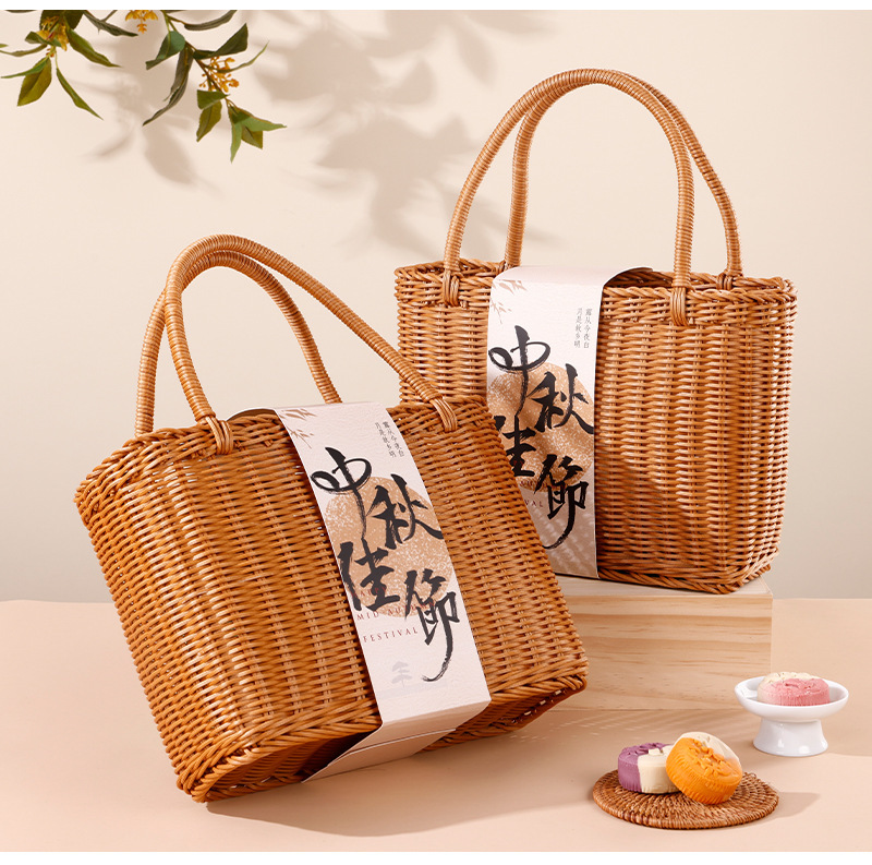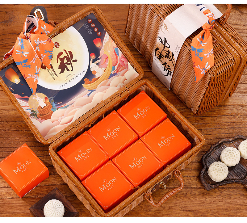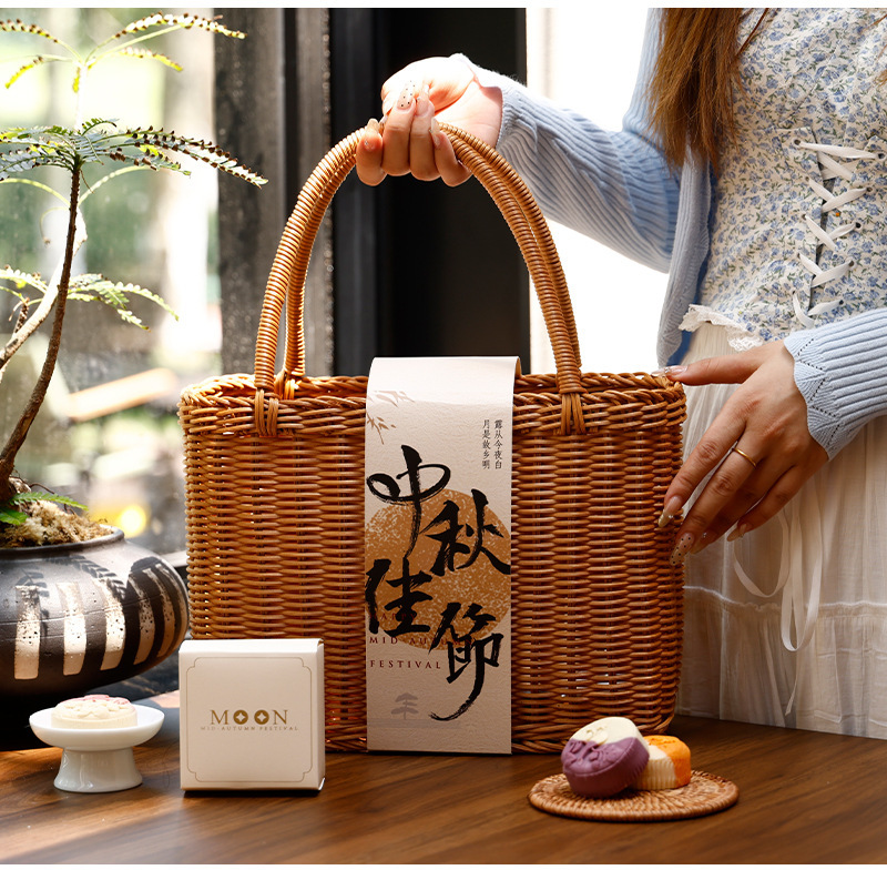 - Specification model: Mid-Autumn wicker hand-pull basket (32*23.5*14CM); 6 pieces set (includes cover + small box)