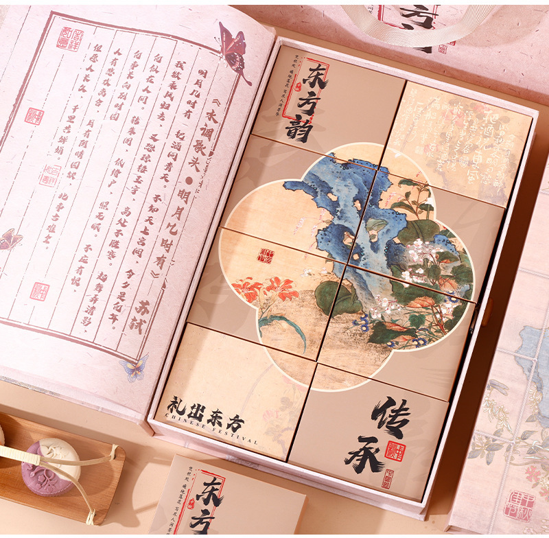 - Specification model: Eastern Charm book-type box (includes small box + gift bag); 8 pieces set (38*25*7CM)