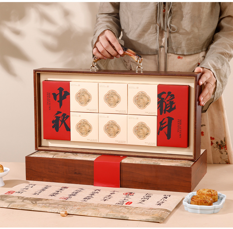 - Specification model: Mid-Autumn double-layer wood box (48*24*7cm); 8 pieces set (includes small box)