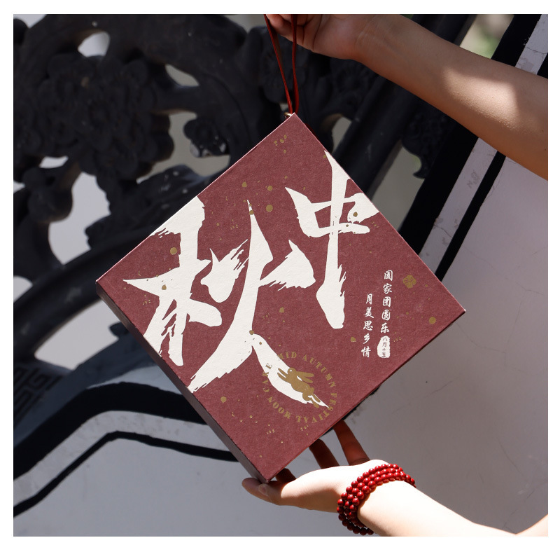 - Box type: Wine red hand-pull drawer mooncake box (21*21*11.8cm)