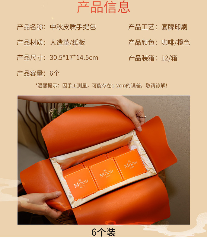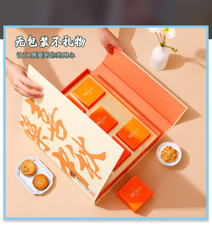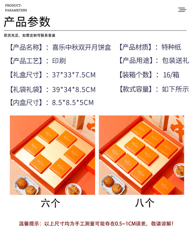 - Specification model: Happy Mid-Autumn double-opening mooncake box (37*33*7.5CM); 6 pieces set (includes small box)