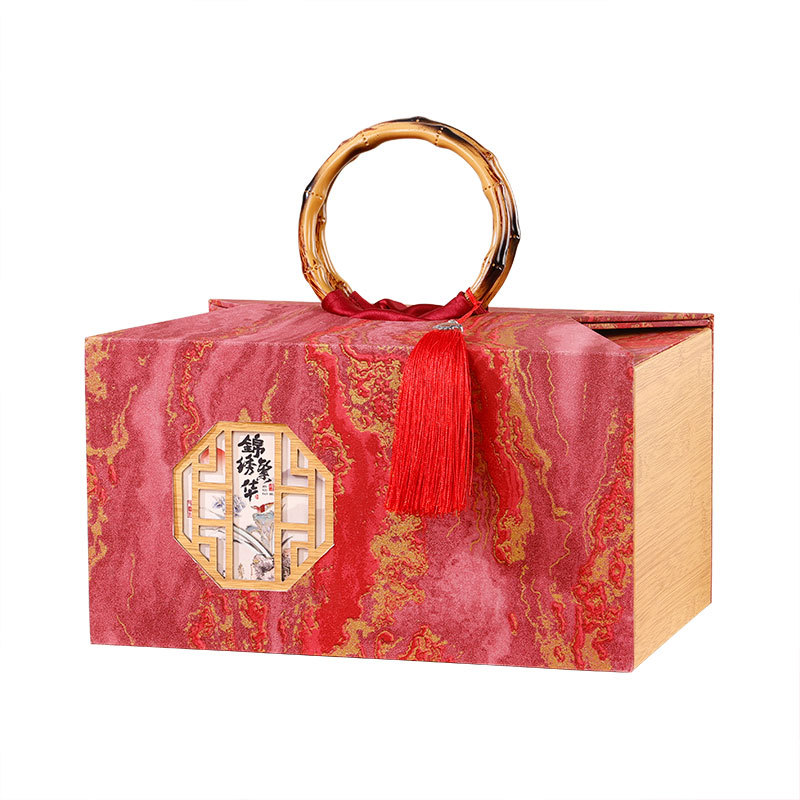 - 規格型號:竹節手提盒—紅色(32*17.5*21CM);12粒裝(含小盒子)