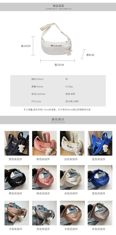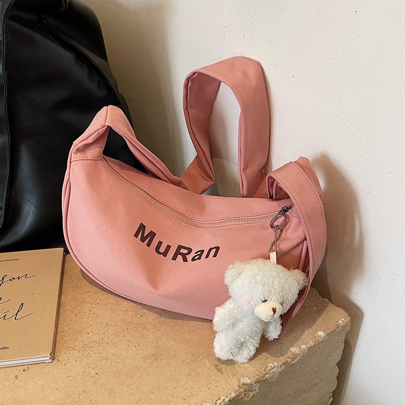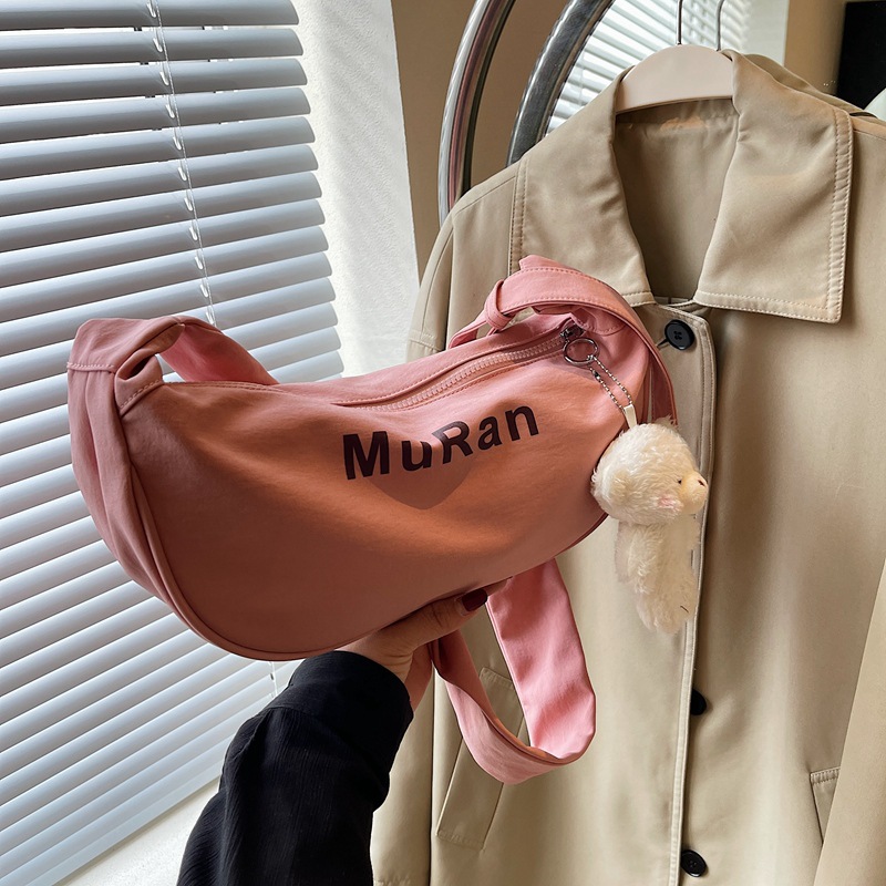 - 高級感女士斜挎包餃子:2024夏季新款帆布簡約單肩包字母純色女高級感女士斜挎包餃子包女