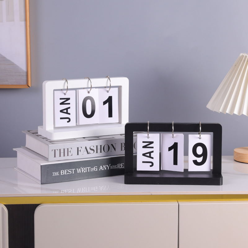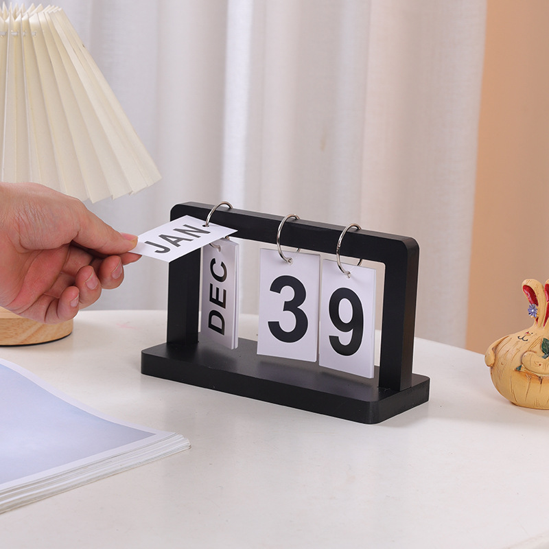 - Specification: Wooden Flip Calendar -- Black
