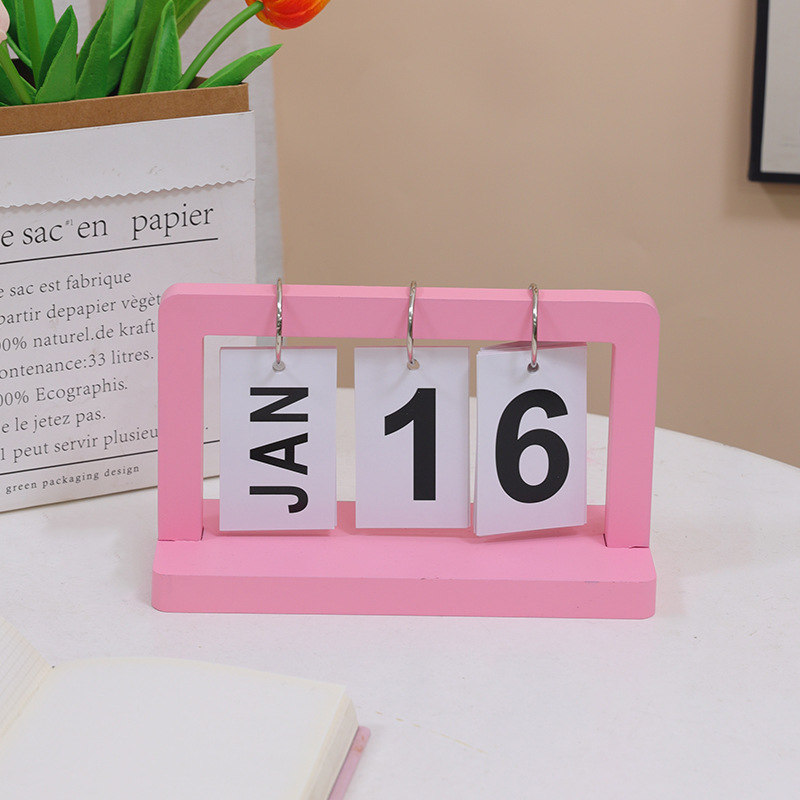 - Specification: Wooden Flip Calendar -- Pink