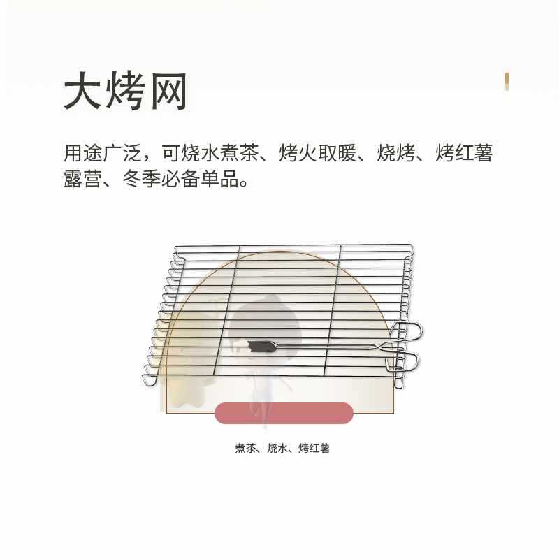 - 烤架/盤規格:中式單層架+盆+方形烤網+炭夾