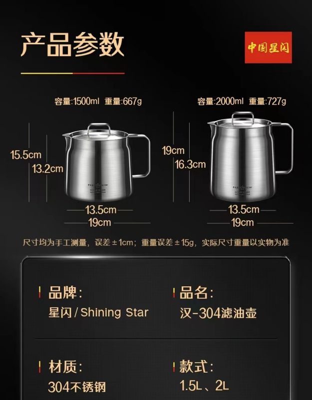 - 容量:304濾油壺1.5L送油勺