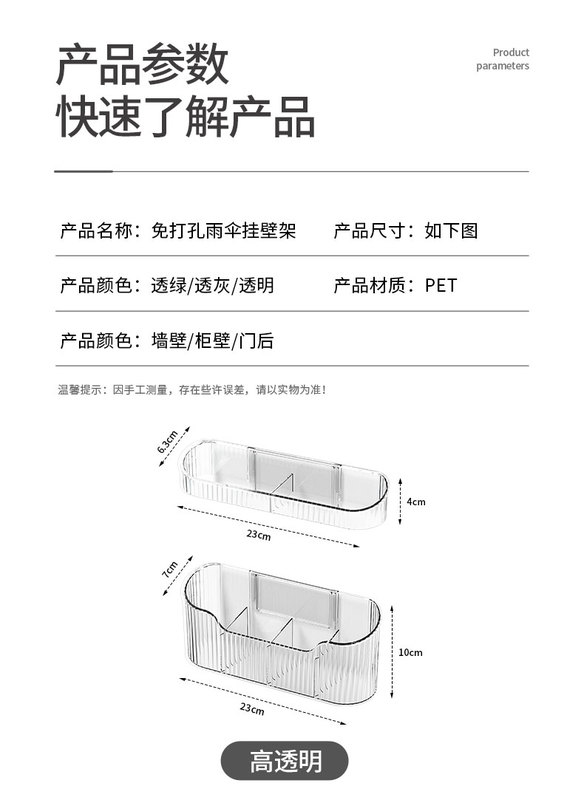 - Umbrella Slot: 【1 piece transparent】Short umbrella storage rack