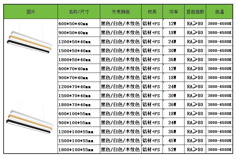 - 功率:120*15cm36W
