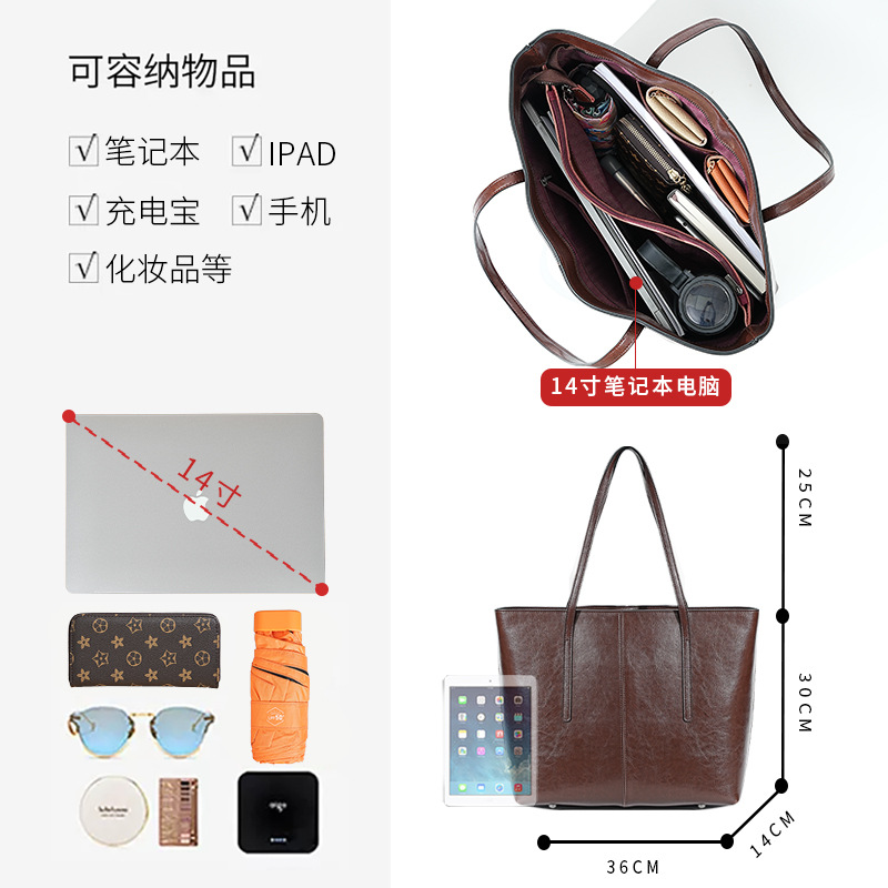 - Style 2:洋气质感大容量牛皮女士单肩包