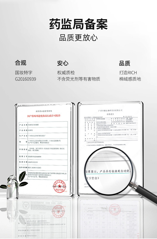 - Special Use Cosmetics License Number: National Cosmetic Special Character G20160939
