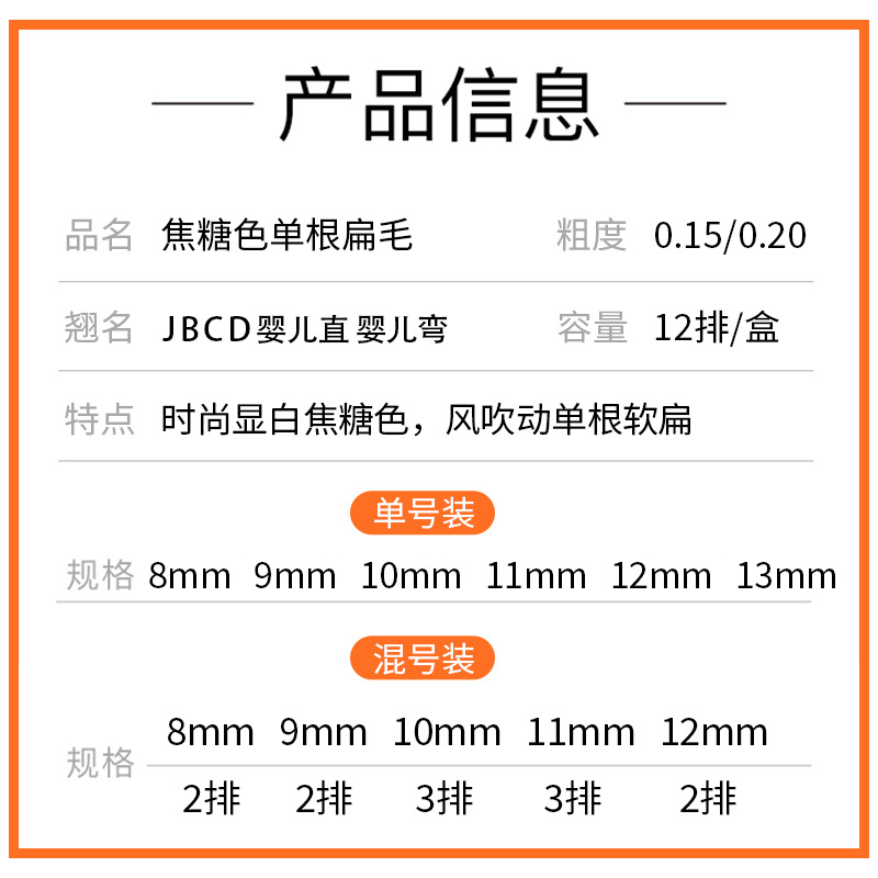 - 規格:0.20焦糖扁毛J翹