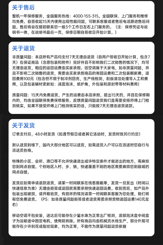 Within 15 days from the date of receipt, customers can be provided with an unconditional return service. The application for return of goods requires the consent of the merchant in the store.