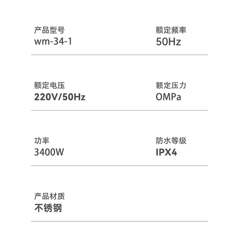 - Rated Power: 3400W