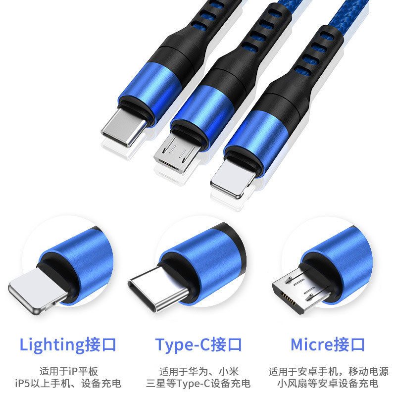 - 型號:3A一拖三【幻影藍】1米