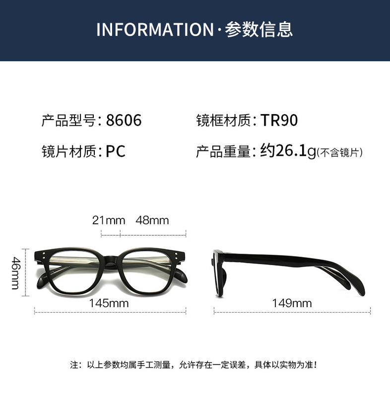 - 眼鏡款式:方框
