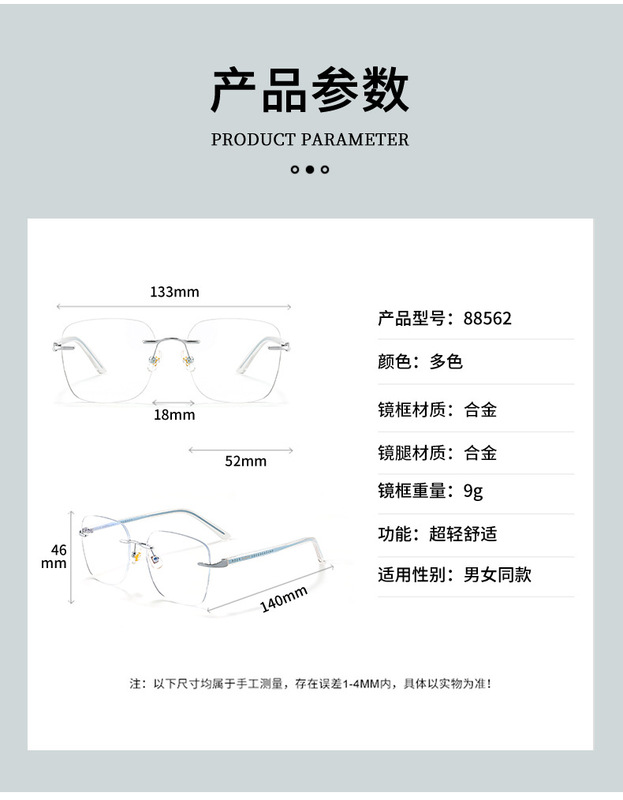 - 眼鏡款式:方框