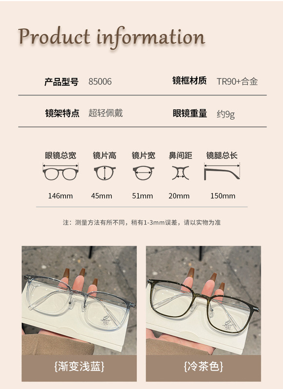 - 眼鏡款式:方框
