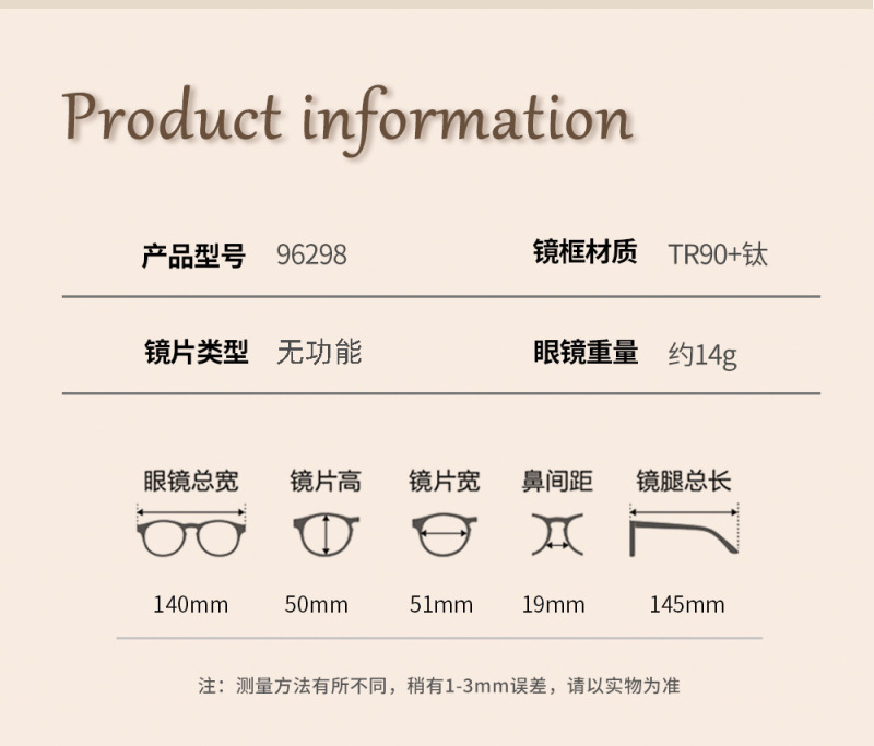 - 眼鏡款式:橢圓框