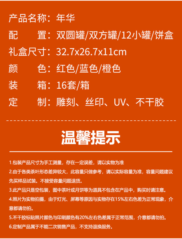 - Specification: Box Type: Red Dual Round Packaging 250g (Without Tea); Specification: 250g