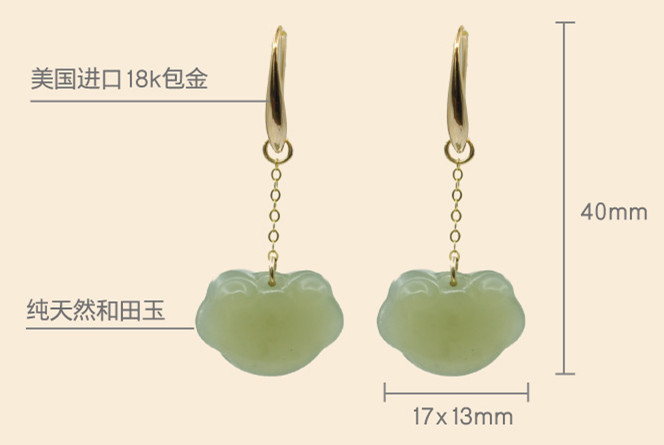 - 1:天然和田玉耳墜如意祥雲耳環女閨蜜純銀鍍耳飾ins小眾設計耳鈎