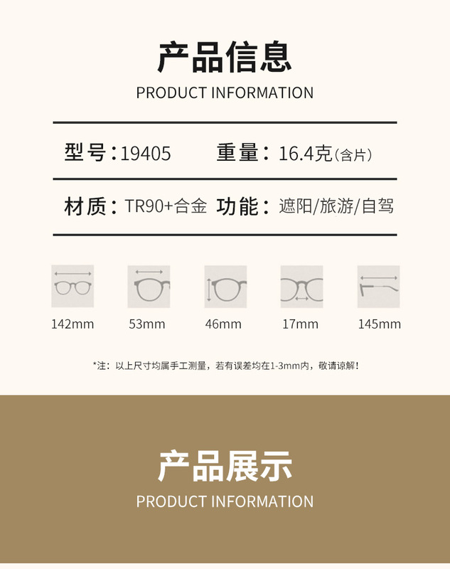 - Transmittance classification: 3 categories / Polarized sunglasses