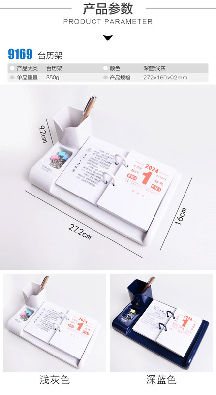 - 規格:【藍色/帶筆筒/單個】9169檯曆架