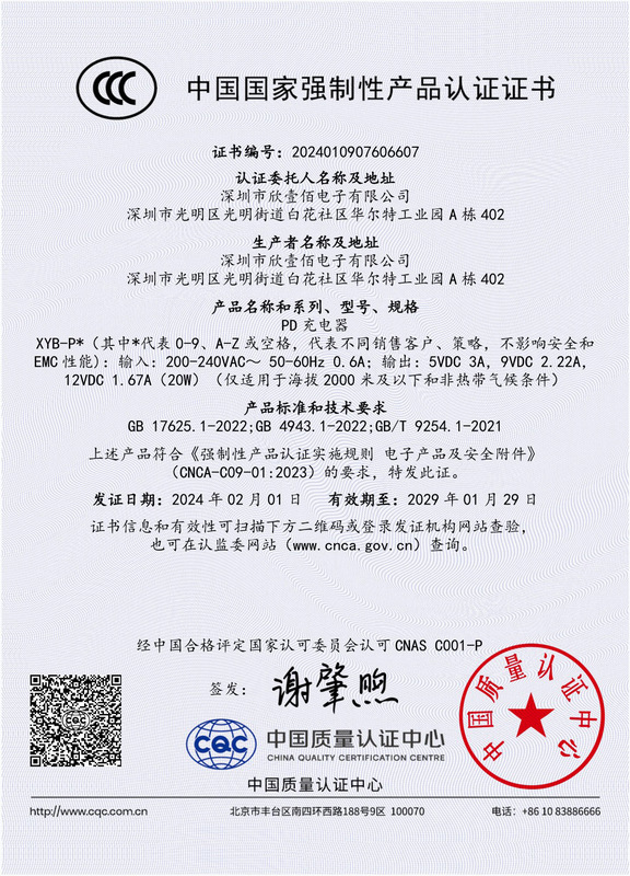 - 3C Certificate Number: 2024010907606607