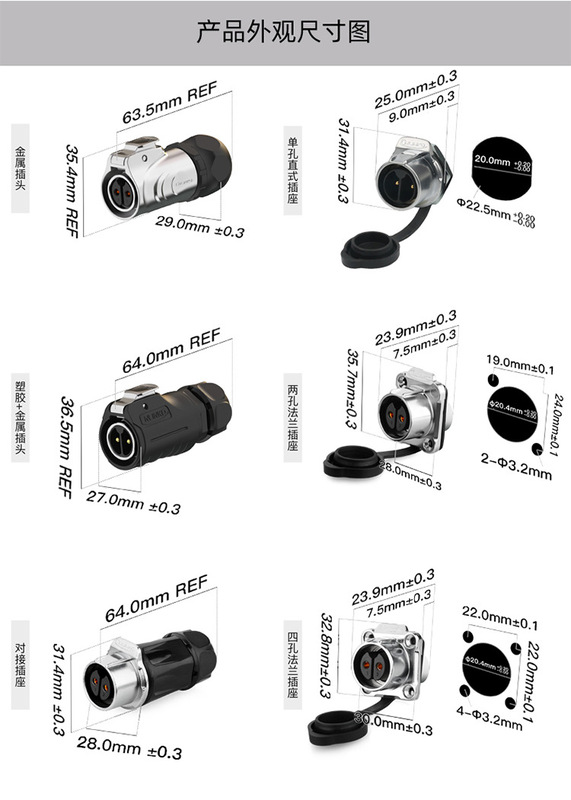 - Specification: LP20 type 2-core male plug